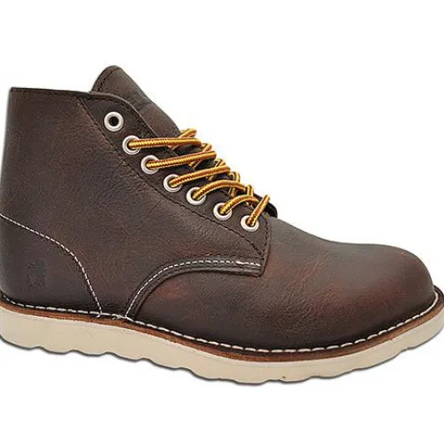 Fed støvle fra Rugged Gear medhvide gummisåler. Støvlen er lavet i olieret skind der fremstår rustikt.