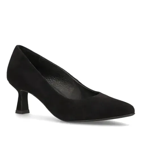 Trendy pumps fra Shoedesign med flot hæl. Overdel i ruskind og skindfoer.