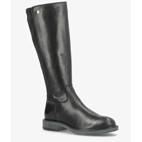 Klassisk lang Vancouver støvle med en overdel af glat skind på forsiden og en strækbar syntetdel på bagsiden, så støvlen kan passe til forskellige størrelser lægge. Støvlen lukkes med en lynlås på indersiden af benet. Indersålen er komfortabel, og den fleksible gummiydersål er stødabsorberende med et godt fodfæste.