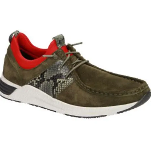 Super fin og komfortabel moccasin sko fra Sioux med præg på siden og rød instep. Modellen har isat elastiksnøre, men tekstilsnørebånd medfølger.