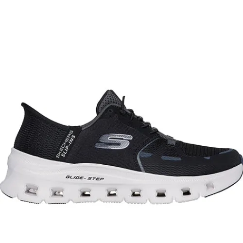 Lækker og sporty Slip-ins Glide-Step® Pro sko med Skechers’ Hands Free Slip-ins-teknologi, hvor du nemt og bekvemt kan træde i skoen uden at bukke dig eller bruge dine hænder. Om hælen får du øget komfort med den indvendigt siddende specialdesignede Heel Pillow-pude, som former sig til din hæl og dens naturlige kurve samt holder din fod på plads. Overdelen er af tekstil med syntetdetaljer, og skoen har en ikkejusterbar elastiksnøre, så skoen tilpasser sig foden i løbet af dagen. Den polstrede Air-Cooled Memory Foam®-indersål er blød og støddæmpende, og den stødabsorberende Glide-Step®-mellemsål giver et naturligt momentum ved hvert skridt. Den fleksible ydersål med gummibelægninger og et kraftigt mønster giver et godt vejgreb. Kan maskinvaskes ved maks. 30 grader. 100 % vegansk.