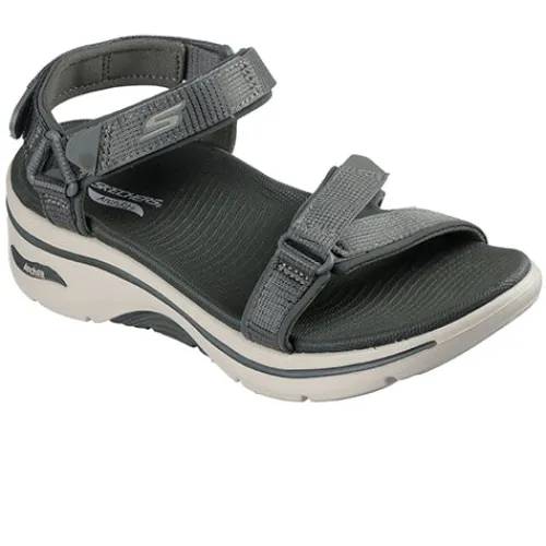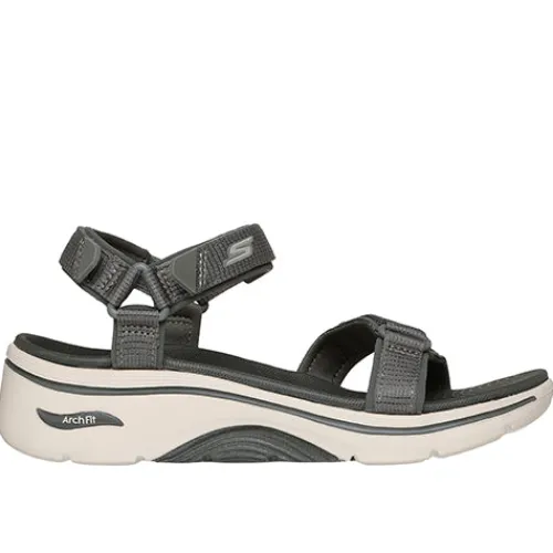 Go Walk Arch Fit – Exhilarate er en lækker sandal med en overdel af meshtekstil og slidstærke syntetdetaljer, og den justeres og lukkes med tre velcroremme (forfod, vrist og hæl) for øget tilpasning til din fod. Sandalen giver dig en god svangstøtte, og med en Contoured Goga Mat®-fodseng får du en god hælstøtte samt stabilisering af foden. Denne lette sandal har Ultra Go-støddæmpning samt stødabsorberende Comfort Pillar-teknologi i mellem- og ydersålen for ekstra støtte. Kan maskinvaskes ved maks. 30 grader. Denne Arch Fit®-sandal har fået tildelt APMA Seal of Acceptance.
