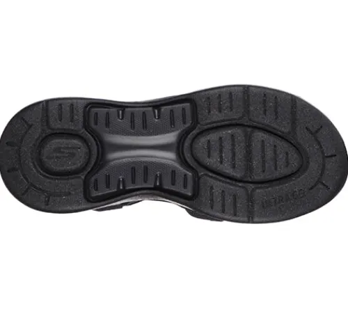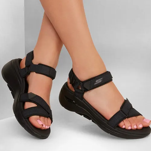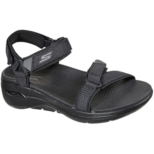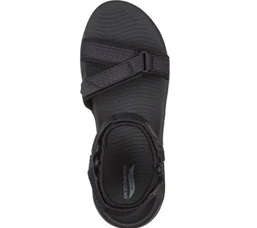 Dejlig og komfortabel Go Walk Arch Fit – Cruise Around sandal med en overdel af tekstil og syntet. Sandalen lukkes med tre velcroremme (forfod, vrist og hæl). Den bløde og komfortable Arch Fit-indersål har svangstøtte, er meget stødabsorberende og former sig efter foden, imens Skechers Contoured Heel-teknologi sørger for, at hælskålen stabiliserer og holder foden på plads i sandalen samt gør sandalen behagelig at have på hele dagen. Den fleksible og lette ydersål giver et godt greb og er stødabsorberende med Ultra Go-støddæmpning. Kan maskinvaskes ved maks. 30 grader.