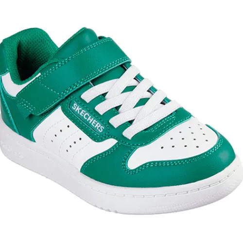 Superlækker Quick Street sko med en overdel af duralæder i et flot miks af grøn og hvid. Skoen lukkes med en velcrorem over vristen, imens det ikkejusterbare elastiksnørebånd sørger for løbende tilpasning til foden gennem dagen. Indersålen er komfortabel, og den stødabsorberende ydersål giver et godt fodfæste. Kan maskinvaskes ved maks. 30˚ (husk vaskepose).