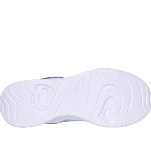 Flot S Lights Heart Lights – Retro Hearts sko med blink på ydersålen. Overdelen er af tekstil, og skoen lukkes med en velcrorem over vristen, imens en ikkejusterbar elastiksnøre sørger for tilpasning til foden i løbet af dagen. For enden af velcroremmen sidder en tænd-/slukknap. Indersålen er komfortabel, og ydersålen er stødabsorberende.