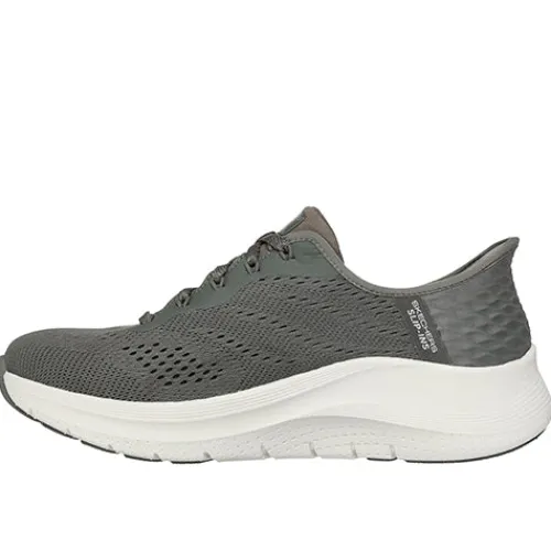 Lækker og vandtæt Slip-ins Arch Fit 2.0 – Morning Mist sko med en overdel af meshtekstil med et vandtæt design med forseglede sømme. Med Slip-ins får du Skechers’ håndfrie teknologi, hvor du nemt kan træde i skoen uden at bruge dine hænder eller at bukke dig, og du får en fast hælkappe med en specialdesignet hælpude, der former sig til din hæl og dens naturlige kurve. Skoen lukkes med snørebånd. Den udtagelige Arch Fit®-indersål giver svangstøtte, former sig efter foden, reducerer stød og er komfortabel, og den gummibelagte ydersål er stødabsorberende med et godt fodfæste. Fås i halve størrelser. Er fremstillet af 100 % ikkeanimalske materialer.