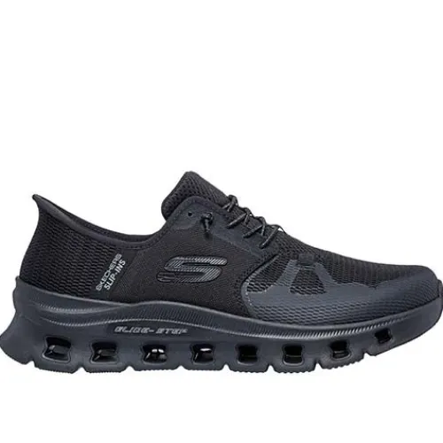 Smart Slip-ins Glide Step Pro sko med en overdel af striktekstil og syntet med en ikkejusterbar elastiksnøre. Med Skechers Hands Free Slip-ins-teknologien kan du nemt træde i skoen uden at bukke dig eller bruge dine hænder. Designet med en komfortabel Heel Pillow, som former sig efter din hæl og holder din fod sikkert på plads. Den polstrede Air-Cooled Memory Foam-indersål er komfortabel, og Glide-Step-mellemsålen er designet til at give naturlig momentum med hvert skridt. Ydersålen med gummibelægninger er stødabsorberende med et godt fodfæste. Kan maskinvaskes ved maks. 30 grader. Fremstillet af 100 % veganske materialer. Fås i visse halve størrelser.