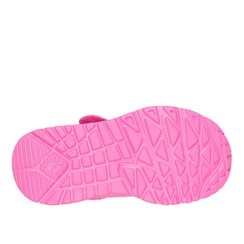 Supersmarte Uno Lite – Love Levitate sko med en overdel af perforeret syntetisk durabuck dekoreret med med hvide, sorte og sølvfarvede hjerter. Denne sko er resultatet af det inspirerende samarbejde mellem Skechers og den anerkendte kunstner James Goldcrown, som bringer sine ikoniske Lovewall-hjertedesigns til Skechers. Skoen er en Easy on-Easy off-model med Adaptive Closure, så den lukkes med en velcrorem over vristen, imens et ikkejusterbart elastiksnørebånd sørger for tilpasning til foden i løbet af dagen. Åbningen er polstret for øget komfort, og indersålen med Air-Cooled Memory Foam® er blød og stødabsorberende. Den lette ydersål er fleksibel og stødabsorberende med et fint fodfæste. Kan maskinvaskes ved maks. 30 grader. Her får du en helt unik og komfortabel sko.