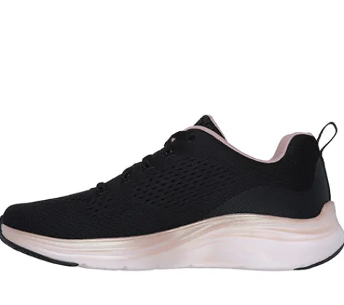 Lækker Vapor Foam – Midnight Glimmer sko udstyret med den fantastiske letvægtsdæmpningsteknologi, Vapor Foam, der garanterer en behagelig oplevelse. Overdelen er af åndbart meshtekstil dekoreret med rødguldsfarvede detaljer på hælens trækfane og en ombre glimmereffekt på ydersålen samt en slidstærk syntetdetalje om hælen. Skoen lukkes med snørebånd, og trækfanen på hælen gør det nemt at træde i skoen. Den udtagelige Air-Cooled Memory Foam-indersål er polstret og stødabsorberende, former sig til din fod og sikrer dig maksimal komfort, og sammen med den bløde mellemsål får du ekstra støtte og komfort hele dagen. Den fleksible ydersål er stødabsorberende og giver et godt fodfæste. Kan maskinvaskes ved maks. 30 grader. Er lavet af 100 % veganske materialer.