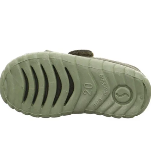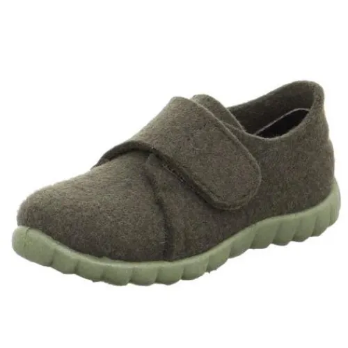 Fleksibel og lun Happy hjemmesko fra Superfit i uldfilt. Lukkes med velcro over vristen og har indvendig tåforstærkning. Den fleksible ydersål giver et godt fodfæste.