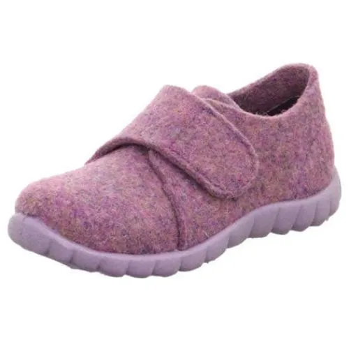 Fleksibel og lun Happy hjemmesko fra Superfit i uldfilt. Lukkes med velcro over vristen og har indvendig tåforstærkning. Den fleksible ydersål giver et godt fodfæste.