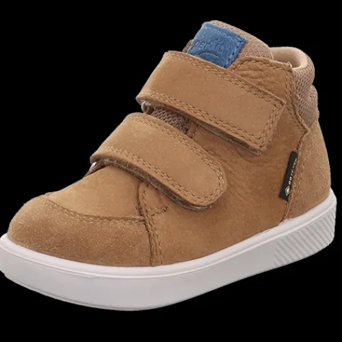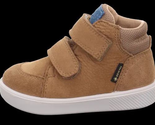 Sød og smart støvlet i kvalitetsmaterialer. Overdelen er af åndbar nubuck, ruskind og tekstil. Støvlen er foeret med tekstil, imens åbningen og øverste del af pløsen er foeret med skind, og herudover har støvlen en vandtæt GORE-TEX-membran, så dit barns fødder holdes lune og tørre. Støvlen lukkes med to velcroremme. Indersålen kan tages ud, og ydersålen er fleksibel og slidstærk.