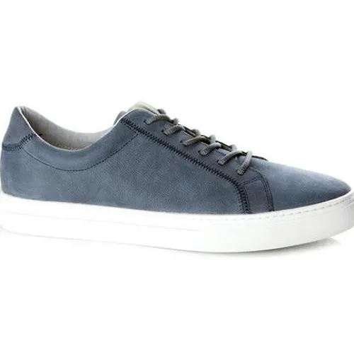 Disse sneakers er lavet i blødt nubuk. Flot model med de hvide såler og blå snørebånd. Indvendig tekstilfor og dæksål i skind.