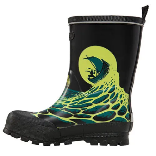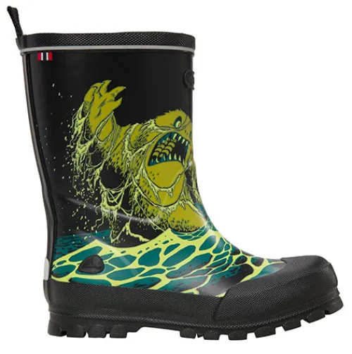 Rigtig fin gummistøvle med havmonster på overdelen. Gummistøvlen er i blødt naturgummi, har forstærkninger på hæl og tå samt reflekser bagpå.
