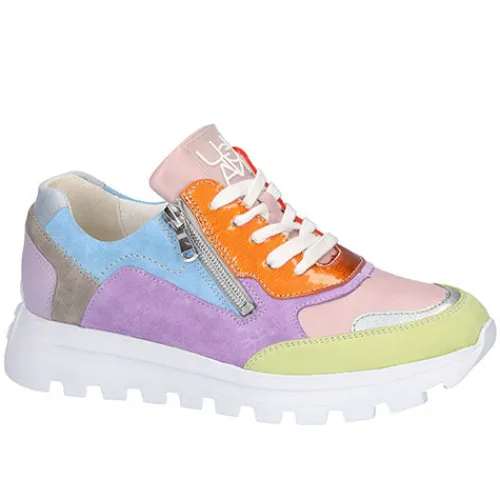 Spændende og komfortabel H-Ajala Denver Poison Bronx sneaker med en multifarvet overdel af ruskind, nubuck og glat skind. Skoen justeres med snørebånd og lukkes med en lynlås på ydersiden af snørebåndet. Den udtagelige indersål er polstret og komfortabel, og med vidde H er der god plads til den bredere fod. Den kraftige ydersål er stødabsorberende, fleksibel og giver et godt vejgreb. Fås i halve størrelser.