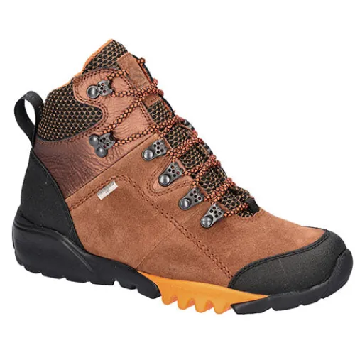 Lækker H-Amiata ankelstøvle med en overdel af nubuck, ruskind, glat skind og tekstil. Skoen lukkes med snørebånd, åbningen er polstret, og en trækfane på hælen gør det nemt at træde i støvlen. Indvendig har støvlen et åndbart tekstilfoer, og med en vandafvisende, vindtæt og åndbar Waldläufer-TEX-membran holdes fødderne behagelige og tørre. Med vidde H er der plads til den lidt bredere fod. Den udtagelige indersål er komfortabel, og den fleksible ydersål med Flexible System er stødabsorberende med et godt fodfæste. Fås i halve størrelser.