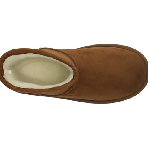 Dejlig og vandtæt Dax W WP bamsestøvle med en overdel af gummi beklædt med tekstil, og indvendig har støvlen et varmt foer af bl.a. uld. Støvlen er en slip on-model. Den kraftige gummiplateausål er stødabsorberende med et fint vejgreb.