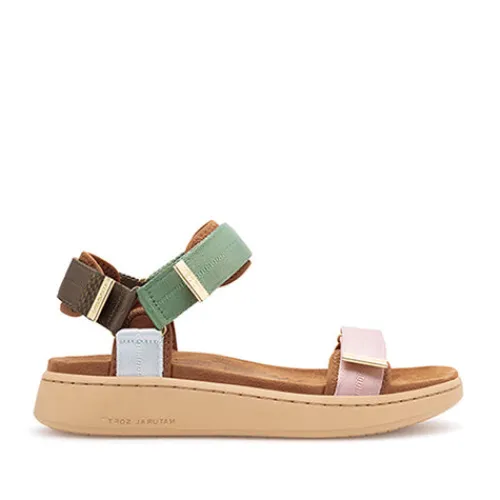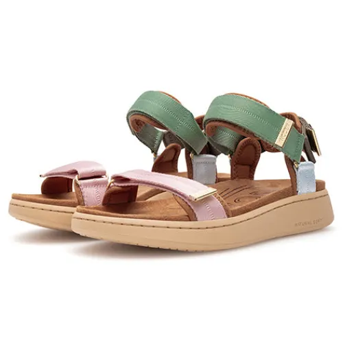Dejlig Line sandal i klassisk Woden-stil med en overdel af tekstil og detaljer af fiskeskind. Sandalen lukkes med tre velcroremme (forfod, vrist og hæl), som sikrer en optimal tilpasning til foden. Indersålen, som er polstret og superkomfortabel, er anatomisk formet for optimal støtte. Sandalens åndbarhed sikres ved brug af en gummiydersål baseret på Wodens Natural Soft-teknologi, som sikrer en høj komfort og ultrablød gangoplevelse. Ydersålen er desuden fleksibel og stødabsorberende og giver et godt fodfæste. *Bemærk, at sålens udseende kan variere på grund af brugen af 10 % genbrugsgummi, som giver hvert par et unikt udseende.