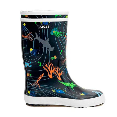 Havets dyr fylder denne flotte gummistøvle fra Aigle, så der er masser at kigge på for børnene. Gummistøvlen er lavet i en skøn blød kvalitet, og har en udtagelig indersål.