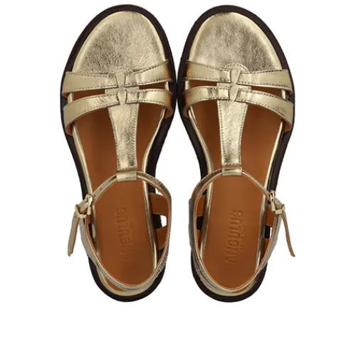 Lækker sandal med en overdel af glat skind med skinnende struktur. Sandalen lukkes med et spænde på ankelremmen. Dæksålen er beklædt med kromfrit skind, imens den mørkebrune og FSC-certificerede rågummiydersål er fleksibel og stødabsorberende med et fint fodfæste, og naturgummiet er genanvendeligt. Fås i halve størrelser. Udformet i naturligt og åndbart skind. Designet i Danmark og håndlavet med kærlighed i Portugal.