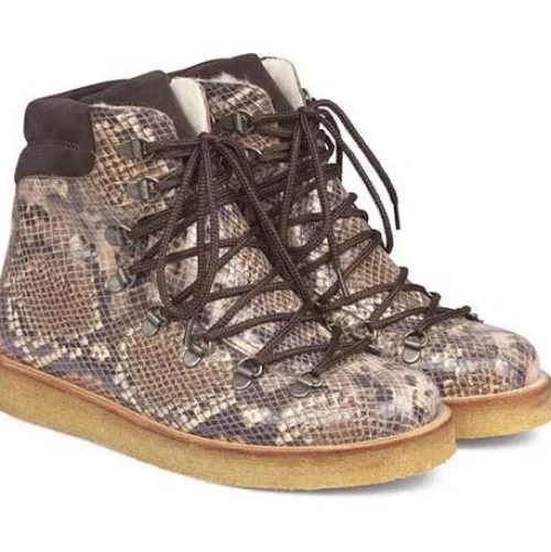 Rå Angulusstøvle i slangeskinds look med lak på overdelen Støvlen er med kraftig snøreringe, lyst uldfoer og naturlige rågummisåler. Produceret i 100% skind og naturmaterialer.