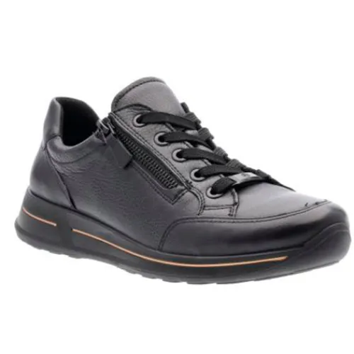 Let og fleksibel Osaka sko fra Ara med en overdel af blødt kalveskind. Skoen justeres med snørebånd og lukkes med lynlås. Foeret er baseret på hudvenlig bambus, der giver et naturligt fodklima og en god åndbarhed. Den udtagelige High Soft indersål er blød og polstret på hæl, svang og forfod, og den fleksible ydersål er dekoreret med en guldstreg.