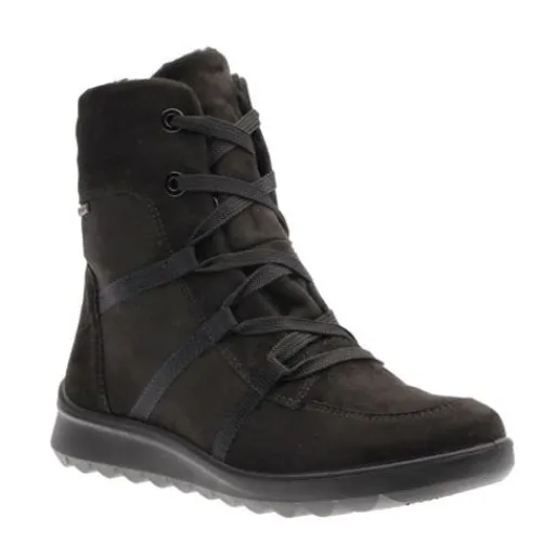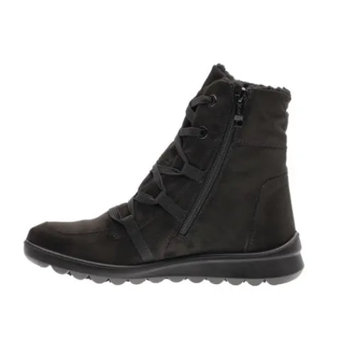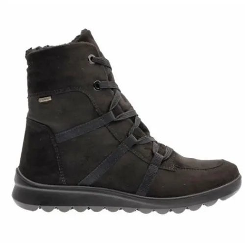 Dejlig Toronto ST GTX vinterstøvle med en overdel af tekstil i nubuck-look, indvendig foret med varmt foer og en åndbar og vandtæt Gore-Tex-membran, så fødderne holdes tørre og varme. Støvlen justeres med snørebånd og lukkes med en lynlås på indersiden af anklen. Med vidde H er der mere plads om forfoden. Den polstrede indersål kan tages ud, og den fleksible ydersål er stødabsorberende med et fint vejgreb. Fås i halve størrelser.