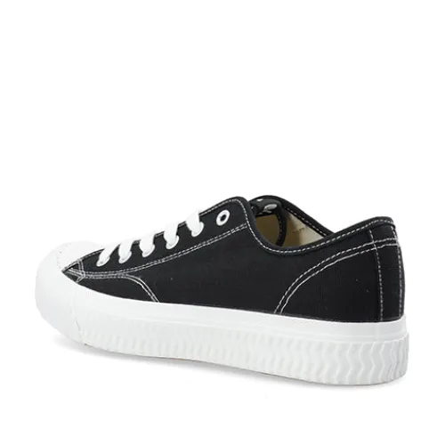 Klassisk sort sneakers med snøre med hvid gummisål.