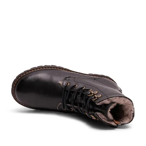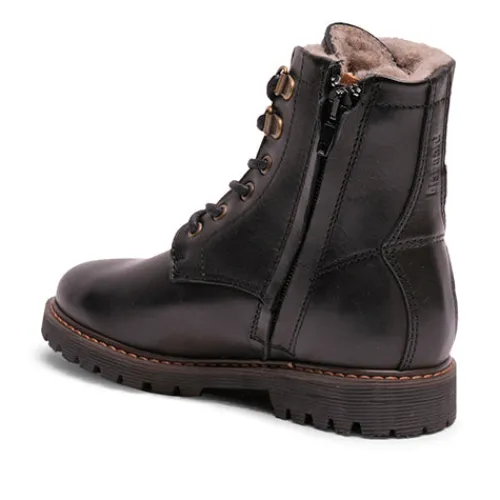 Vandtætte vinterstøvler med uldfoer og TEX, som holder fødderne varme og tørre i årets koldeste måneder. Støvlen er lavet af naturligt og åndbart læder med temperaturregulerende uldfoer, der føles silkeblødt for fødderne. Der er tilføjet en skjult lynlås i siden, så barnet nemt kan tage støvlen på selv. Den fleksible ydersål sørger for høj komfort gennem hele dagen og giver et godt fodfæste.