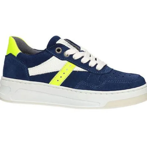 Ruskinds sneaker fra Bullboxer med hvide og grønne neondetaljer. Bløde og fleksible såler. Indvendig er der skindfoer og skinddæksål.