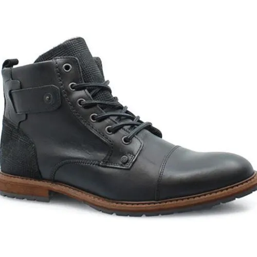 Bullboxerstøvle med snøre og indvendig lynlås. Støvlen er foret med et lunt tekstilfoer.