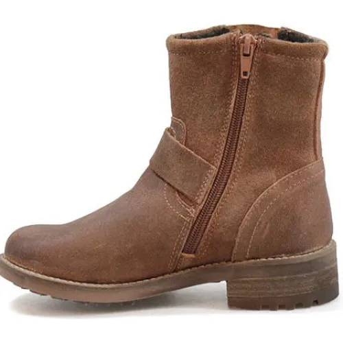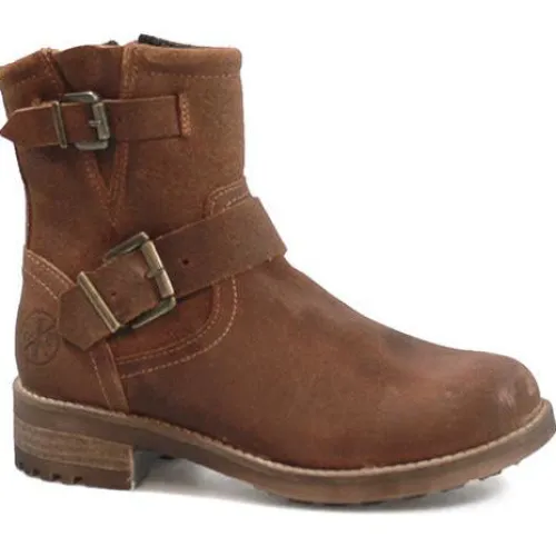 Bikertype fra Bullboxer. Støvlen har spænder, og indvendig på skaftet et der en lynlås. Støvlen er foret med et lunt tekstilfor.