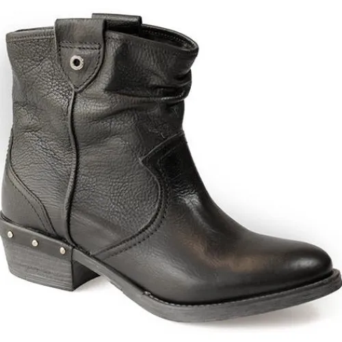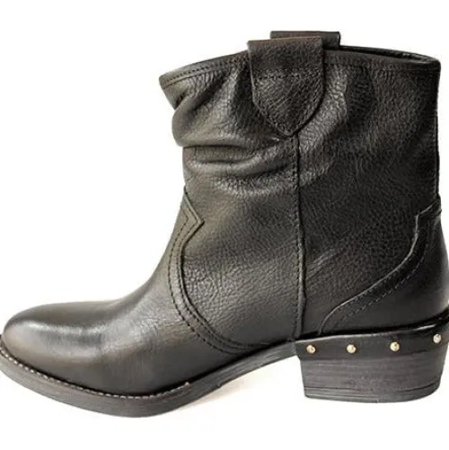 Cowboy-inspireret støvle fra Bullboxer med enkle nitter rundt i hælkanten. Modellen har et tyndt tekstilfor.