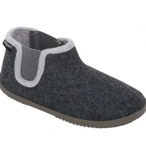 Praktisk hjemmesko fra Bundgaard med gummisål til indendørs brug. Hjemmeskoen er nem at få af og på, da elastikkerne i sidder giver sig, når hjemmeskoen tages på. Hjemmeskoen er lavet med skøn uld/filt på en god gummisål. Den er forret indvendig med fleece, samt en udtagelig indlægssål.