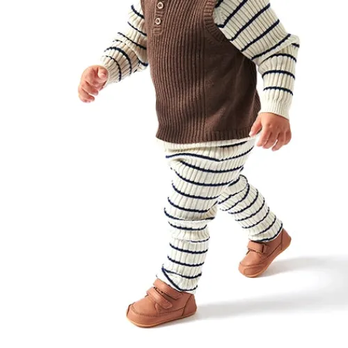 Prewalker er en fantastisk klassiker, der har hjulpet mange generationer med deres første skridt. Det er den perfekte lille begyndersko til barnet, der så småt er begyndt at øve sig på at gå. Hvis barnet kan rejse sig op ad ting, stå selv eller måske tage et par skridt med mor eller far i hånden, kan det hjælpe at have prewalkers på, så fødderne ikke glider.
