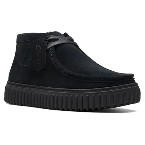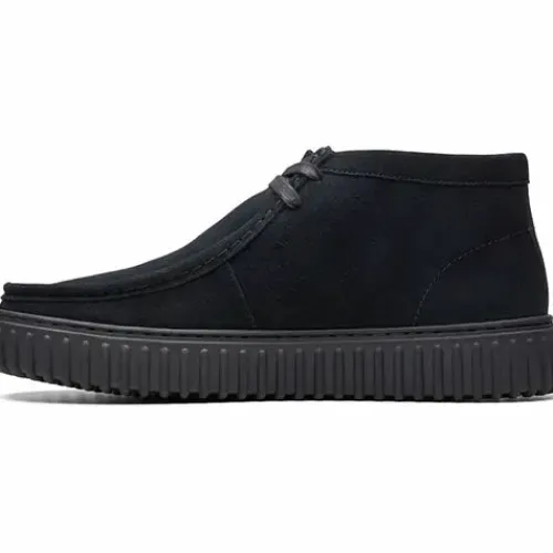 Lækker Torhill Hi støvle med en kraftig og karakteristisk ydersål. Overdelen er af ruskind, og skoen lukkes med snørebånd. Vidde G er Clarks’ standardvidde til mænd. Den udtagelige Contour Cushion-indersål af skind er polstret og komfortabel, og den grove gummiydersål er stødabsorberende og giver et godt vejgreb.