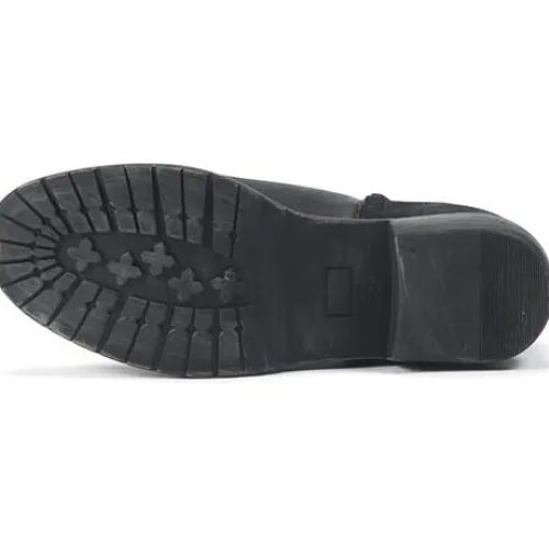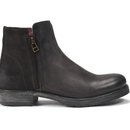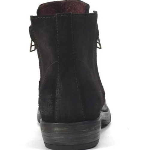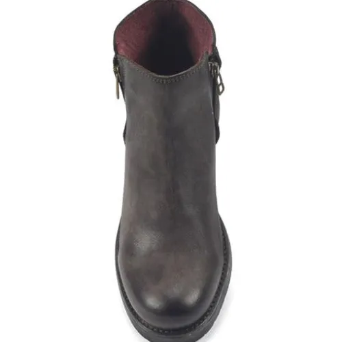 Kort støvle fra Coxx Borda med afrundet snude, glat skind foran og slidt ruskind bagpå. Støvlen har to praktiske lynlåse og har foer og dæksål i skind.