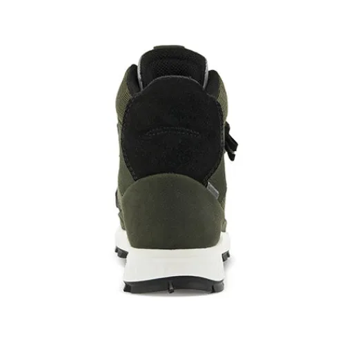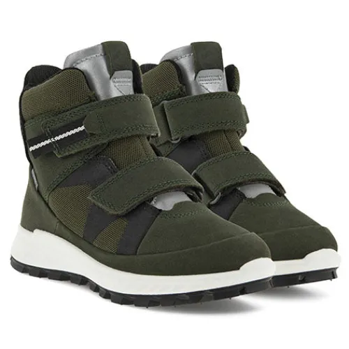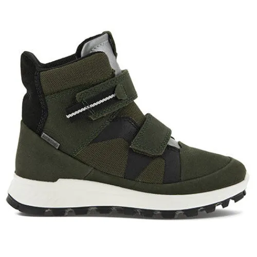 Den mellemhøje ECCO EXOSTRIKE KIDS-støvle yder den nødvendige støtte i ujævnt og krævende terræn. Holdbart læder er kombineret med en ydersål i gummi, der yder et optimalt vejgreb. Dette er en karakteristisk street-klar støvle konstrueret til udendørsaktiviteter. Velcrolukningen gør skoen justerbar og komfortabel. Disse er designet med flotte farver og refleksdetaljer. De har et sporty, cool look.