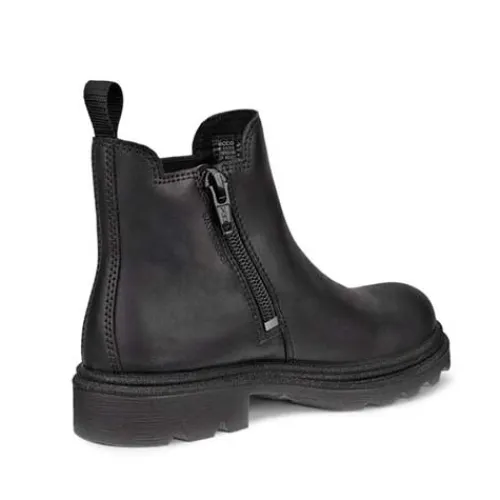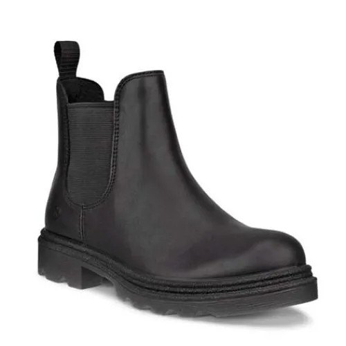 Smart Grainer K vinterstøvle med en overdel af glat skind og et elastikpanel på ydersiden af anklen. Støvlen lukkes med en lynlås på indersiden af anklen, og en trækfane bagpå gør det nemt at træde i støvlen. Indvendig har støvlen et varmt foer samt en vandtæt tex-membran, så fødderne holdes varme og tørre. Indersålen kan tages ud, og den kraftige ydersål er fleksibel og stødabsorberende med et godt vejgreb.