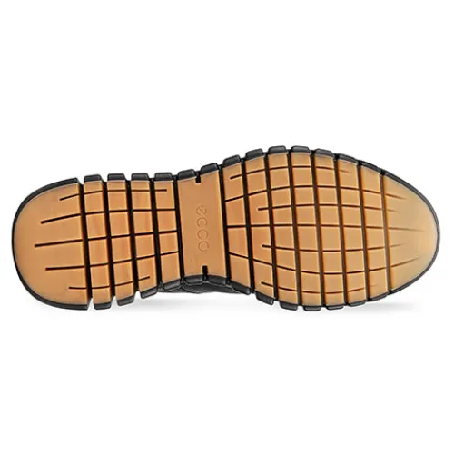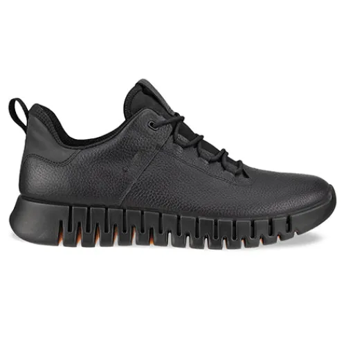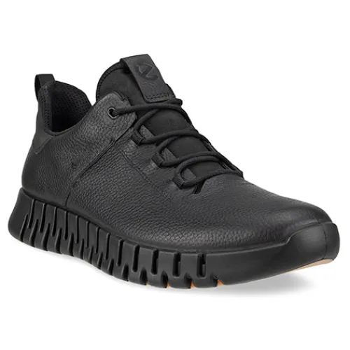 ECCO GRUUV sneakeren er specialudviklet til at give dig en behagelig gang og støtte i hvert eneste skridt og er designet til at være en landtidsholdbar sko med førsteklasses kvalitet til at opfylde dine behov på farten. En unik egenskab ved denne behagelige sneaker er den innovative gummisål, som er fleksibel og bøjelig to veje, så din fod kan bevæge sig frit uanset underlaget. Overdelen er af blødt læder med refleksdetalje på hælen. Skoen lukkes med et elastisk snørebånd, som sidder i udvendige snørehuller til hurtig justering på farten, og trækfaner på hæl og pløs gør det nemt at træde i skoen. Med en vandtæt og åndbar GORE-TEX-membran holdes fødderne behageligt tørre. Den udtagelige Dual Fit-indlægssål i komfortskum giver mulighed for to pasformer, hvor du kan tilpasse bredden individuelt. ECCO FLUIDFORM™ giver en naturlig anatomisk støttende pasform og fornemmelse, imens den dynamiske og stødabsorberende gummisål, som kan flekse to veje, giver dig et godt fodfæste og fuld udnyttelse af din fods bevægelser i enhver vinkel.