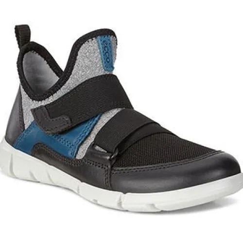 ECCO sko i et mix af blødt skind og mesh. Elastik og den justerbare velcrorem holder godt på foden, og så er de nemme at smutte i. Super blød og lækker at have på foden, og så vejer den ikke særlig meget, på grund af de fleksible pu-såler.