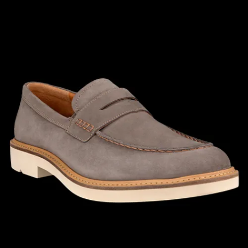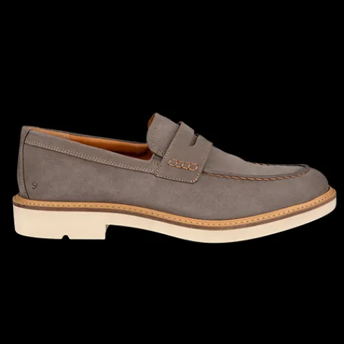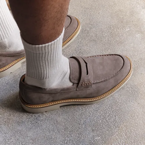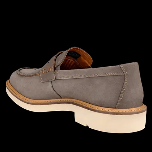 Lækker Metropole London sko i pennyloaferstil med en overdel af blød nubuck. Elastikkiler på begge sider af åbningen gør det nemt at træde i skoen, som har ekstra vidde via ECCO’s Dual Fit-system med to udtagelige indersåler; tag den nederste ud for en bredere sko. Den øverste indersål består af formstøbt phorene med skind, som er superkomfortabel med polstring på hælen samt åndbar med øget luftcirkulation via den perforerede forfod. Den fleksible og stødabsorberende ydersål er forholdsvis kraftig og giver et fint fodfæste.