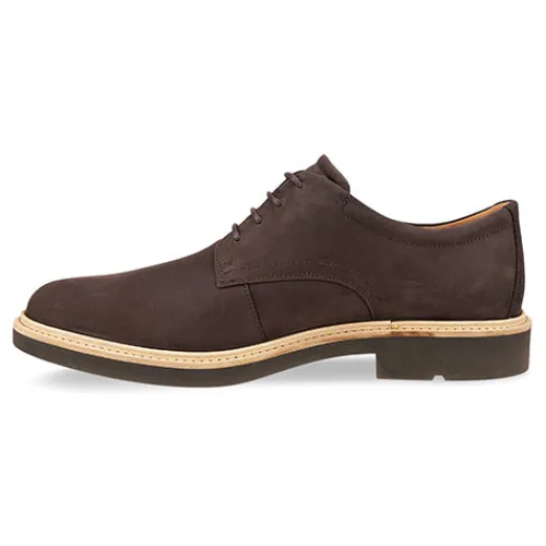 Flot METROPOLE LONDON sko til herrer med rund tå og en overdel af glat ECCO-nubuck i førsteklasses kvalitet. Skoen er en klassisk derbysko, der føles som din bedste sneaker, idet den er rummelig med Dual Fit-systemet, som består af to udtagelige indersåler. Tag den nederste ud for en bredere sko, hvis der er behov for mere vidde og plads i tåzonen. Den øverste indersål består af blød, formstøbt ECCO PHORENE™ med skind, som er superkomfortabel og ultralet med stødabsorbering. Den fleksible og lette ydersål med ECCO FLUIDFORM™ giver en anatomisk pasform og naturlig fornemmelse og er stødabsorberende med et fint fodfæste. Med lidt hæl til at give dig et behageligt løft.