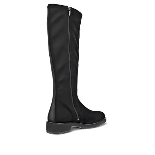 Dejlig og let ECCO Metropole Vienna W Tall Boot med en overdel af strækbart tekstil, der gør det nemt at tage støvlen på. Lukkes med en lynlås på indersiden. Indvendig har støvlen et tekstilfoer. De udtagelige Dual Fit-indersålen giver mulighed for mere rummelighed om foden ved at fjerne den ene sål. Den fleksible og kraftige ydersål er godt mønstret og stødabsorberende med et godt fodfæste, og ECCO FLUIDFORM™ giver blød og flydende bevægelse i en naturligt støttende anatomisk pasform.