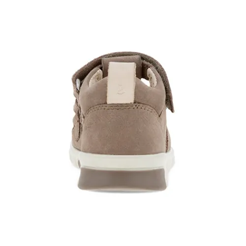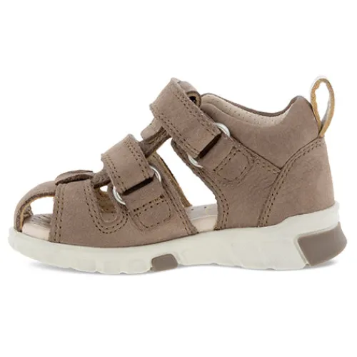 ECCO MINI STRIDE SANDAL sikrer høj komfort for små fødder på farten. Overdelen er af nubuck, og den lukkede tå yder ekstra beskyttelse, mens inderfoer af læder optimerer komforten. Sandalen lukkes med to velcroremme over vristen, og en trækfane på hælen gør det nemt at få foden i sandalen. Den fleksible letvægtssål giver masser af affjedring og komfort, mens TPU-indlæg gør designet ekstra farvestrålende, og det grove sålmønster sørger for et godt vejgreb.