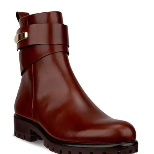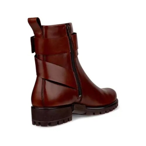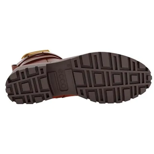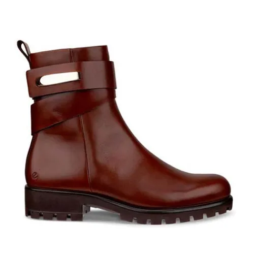 Lækker Modtray W ankelstøvle med en overdel af glat fuldnarvet ECCO-skind med en bred pynterem om anklen. Remmen har et guldfarvet ornament, som er specialdesignet til denne kollektion, og med velcro kan remmen justeres. Støvlen lukkes med en lynlås på indersiden af anklen. Indvendig har støvlen et tekstilfoer, og den polstrede og åndbare indersål er beklædt med skind og kan tages ud. Med ECCO FLUIDFORM™ Direct Comfort-teknologi får du optimal komfort. Den kraftige og fleksible gummiydersål er stødabsorberende med et godt vejgreb.