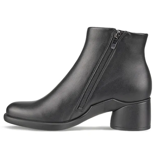 Lækker Sculpted LX 35 ankelstøvle, der er behagelig at have på hele dagen. Overdelen er af glat skind, og støvlen lukkes med lynlås på indersiden. Støvlen er foeret med skind, og den er vandtæt og åndbar i kraft af ECCO Waterproof – ECCO’s egen vandtætte membran. Indersålen er Dual fit insoles, som består af to udtagelige såler, og den ene kan fjernes og dermed give en bredere og mere rummelig støvle, især om forfoden og tæerne. Plateauydersålen har et gummimønster for bedre fodfæste samt en læderbeklædt 5 cm hæl til at give dig et elegant løft.
