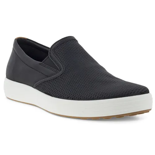 Glid ind i ECCO SOFT 7 slip-on sneakeren, og mærk straks den kvalitet og komfort, som ECCO er kendt for. Dette er din afslappede, men alligevel raffinerede sneaker med højteknologiske innovationer, som du kan stole på sæson efter sæson. Elastik i begge sider af åbningen gør skoen nem at træde i.