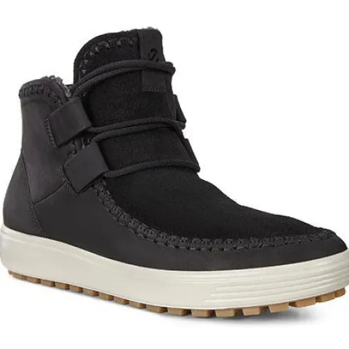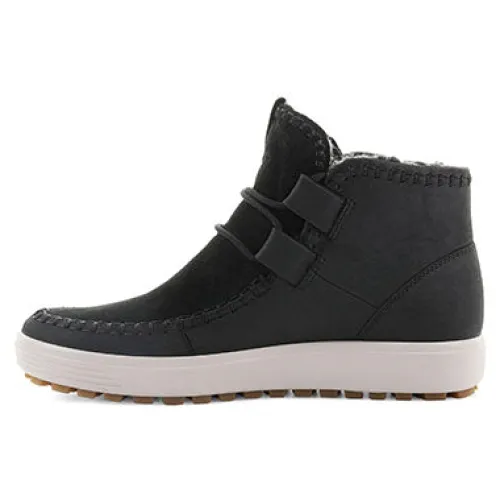 ECCO Soft 7 vinterstøvle med varmt foer. Støvlen har fine moccasinsyninger og snørebånd. Modellen rummer godt i bredden og den udtagelige indersål er beklædt med filt.
