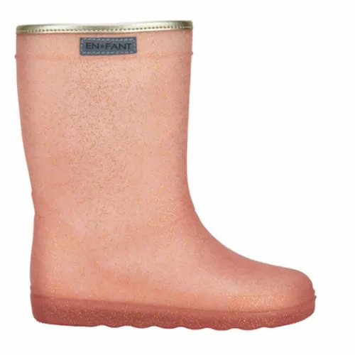 Rosa gummistøvle med glimmer fra En*fant der er lavet i et slidstærkt og robust materiale, samtidig med, at det er dejlig blødt og har et godt greb på alle slags underlag. Gummistøvlen er fri for PVS og phtalater og kan maskinvaskes ved 30° C (Husk at fjerne indersålen).